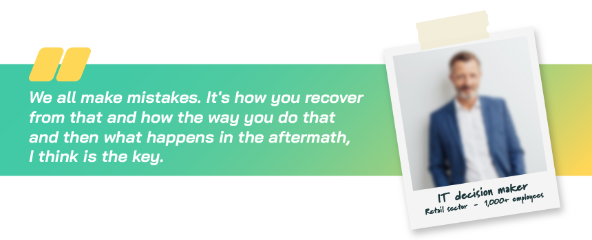 On the other hand, this incident has also been a significant blow. The company’s share price dropped by 32% in the 12 days following the outage. They are now facing lawsuits from investors and Delta Airlines passengers, with Delta itself threatening legal action for a $500 million loss linked to the disruption. Additionally, 74% of respondents in our Vanson Bourne Community survey reported having lower trust in CrowdStrike after the incident. More than two-thirds (68%) are now less likely to recommend CrowdStrike as a cybersecurity provider.
